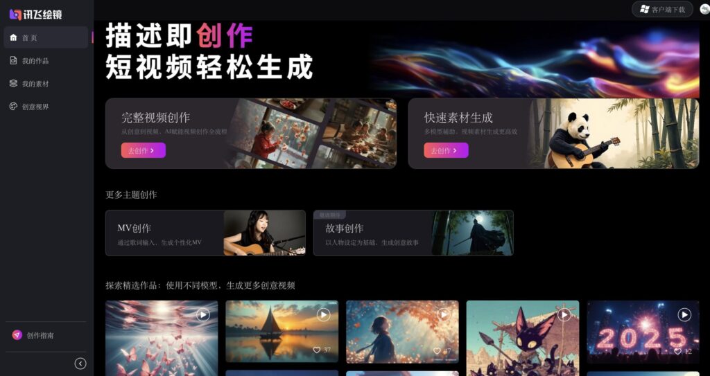 The “探索精选作品” section is a treasure trove of inspiration. Here, users can view a curated collection of videos created using different AI models on the platform. This not only showcases the capabilities of 讯飞绘镜 but also provides users with ideas for their own projects. Whether it’s a visually stunning short film or an engaging explainer video, these featured works demonstrate the versatility and potential of AI – driven video creation.